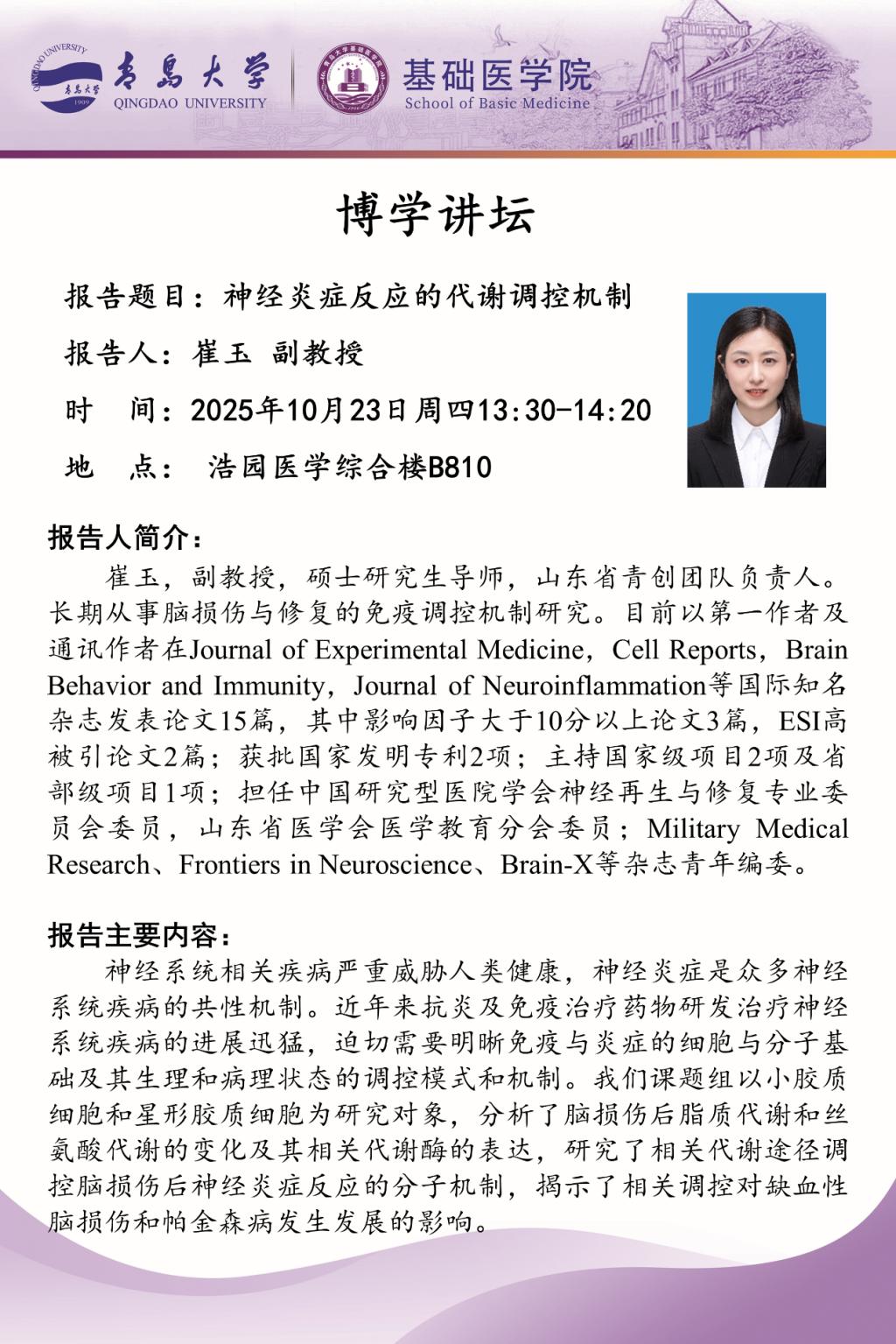 定期举办 “博学讲坛” 系列学术活动。该讲坛定位多元价值:不仅致力于全面提升研究生的科研素养与实践创新能力,也为院内教师打造了科研思路碰撞、学术经验共享的优质交流平台,同时诚挚欢迎外学院师生积极参与,助力不同领域研究者共同拓宽学术视野、凝聚科研共识。在第一期讲坛中,学院特别邀请到病理学与病理生理学专业青年导师崔玉副教授担任主讲人,带来高水平学术报告。蜜桃传媒